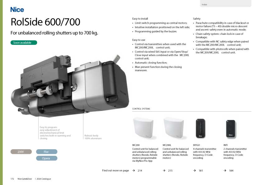 • Nice MC200 Control Unit – Designed for balanced and unbalanced rolling shutters.